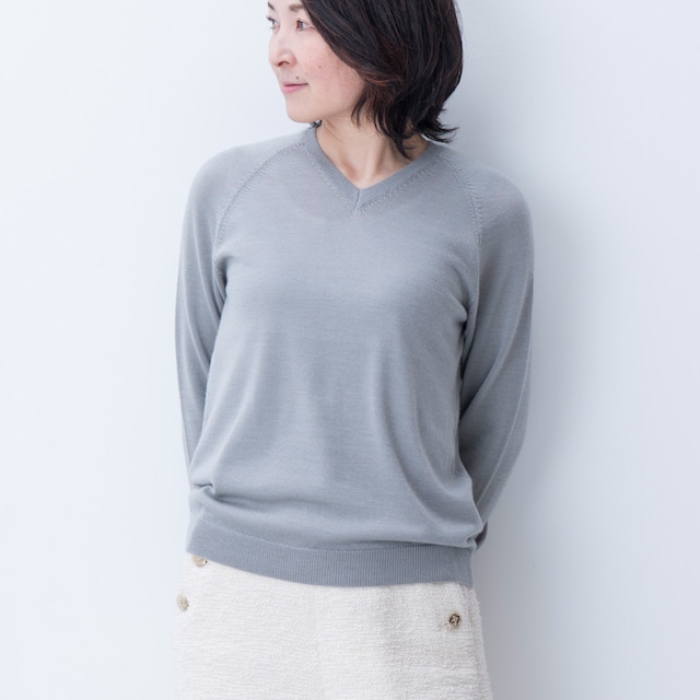 【tsunagu製品は現在受注生産のため、ご注文受付日から3週間後の発送予定となります】 カシミヤ70%/シルク30% 日本製(宮城県加美郡) ●Price(税別) size: 38/40/42 - ¥100,000 ●Color Mグレー ※糸がなくなったため【ミント】カラーはご注文不可になりました。 ●Size 38/40/42 ●サイズ詳細 □38 着丈:58.5cm 身巾:45cm 桁丈:75cm 前下り:14.5cm □40 着丈:62cm 身巾:49cm 桁丈:77cm 前下り:15cm □42 着丈:66cm 身巾:53.5cm 桁丈:83cm 前下り:15.5cm