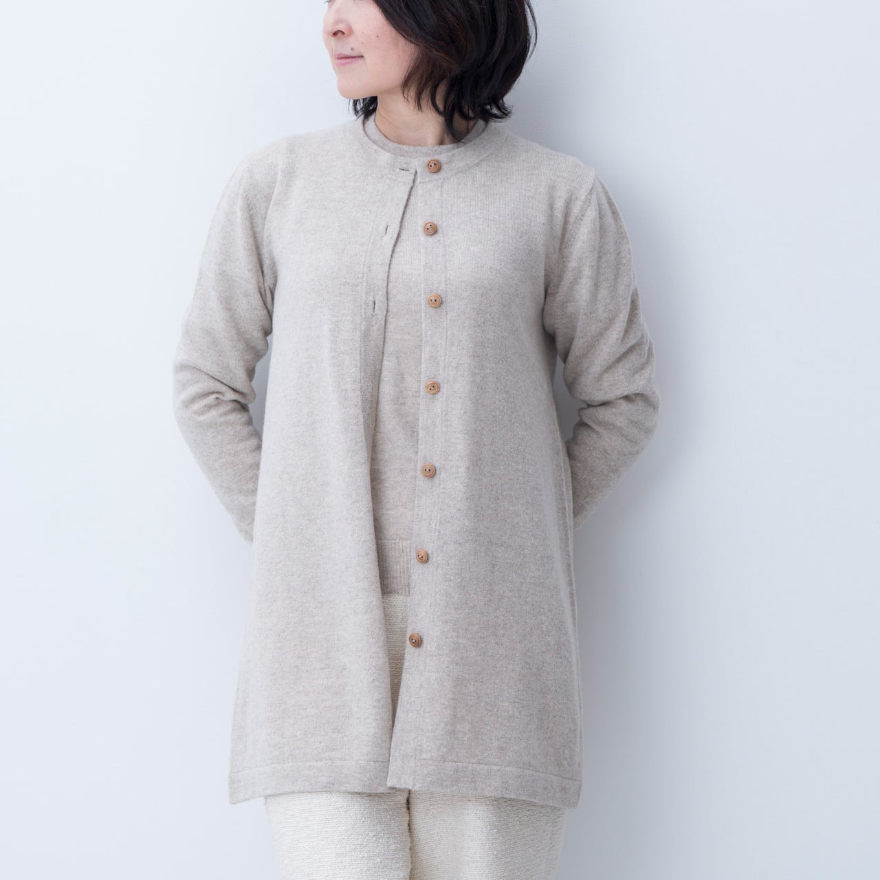 ラウンドネックロングカーディガン度詰(サイズ:42・44)